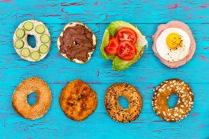 Strona główna » Bajgle w sam raz na jesienne śniadanie! » Four fresh sliced bagels with assorted filling