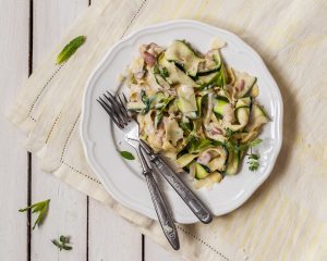 Strona główna » Pappardelle z cukinii i marchewki z wędzonym łososiem » Fettuccine Alfredo with Zucchini