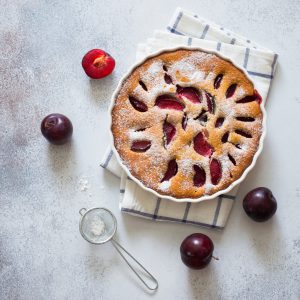 Homemade plum cake and fresh plums