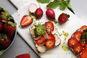Strona główna » Truskawkowe kanapki » Rye bread with strawberry and radish / Fresh original snack